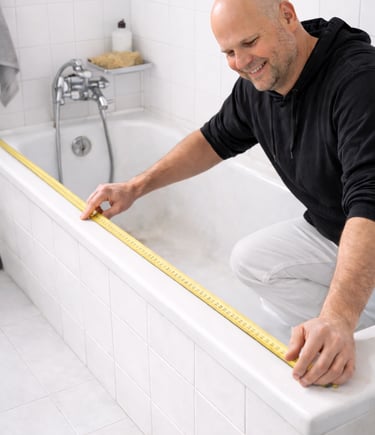 Zunächst vermessen wir Ihre bestehende Badewanne präzise vor Ort. Anschließend wählen wir gemeinsam mit Ihnen das passende Modell aus hochwertigem Sanitär-Acryl aus.